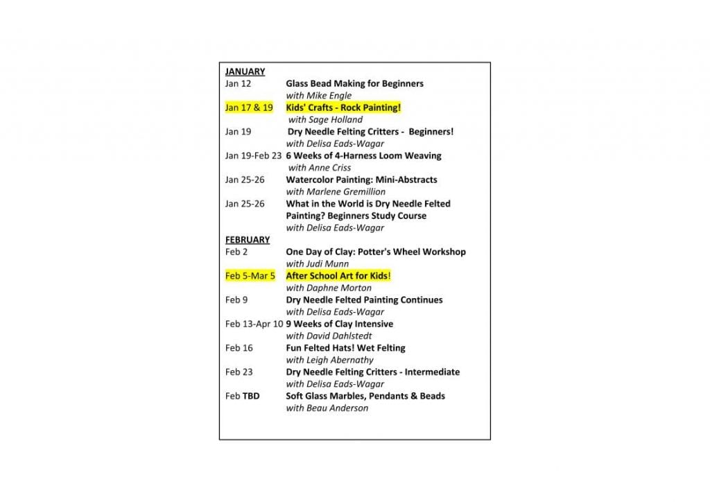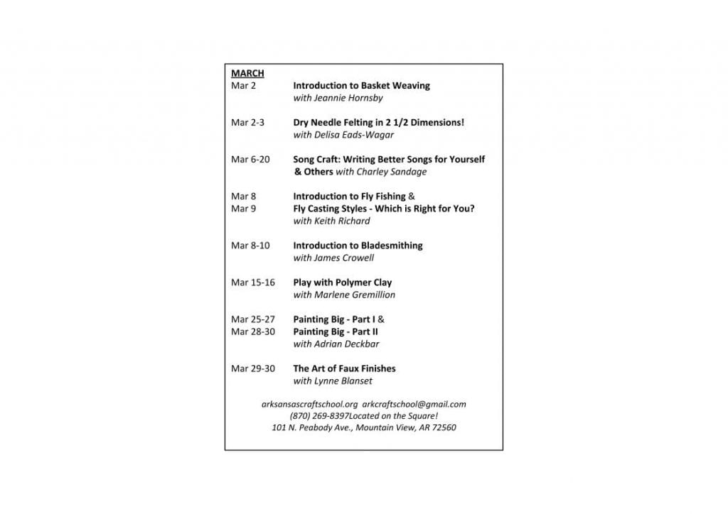 MOUNTAIN VIEW — The Arkansas Craft School has announced its upcoming class schedule in Mountain View.