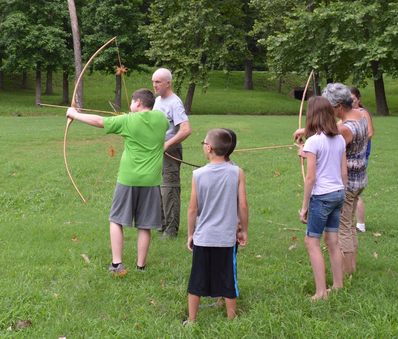 Thirty people attended the workshop in Rand City Park in Calico Rock where Turner explained the process of making long bows, decorating them with dried snake skins for natural camouflage, and living a pioneer lifestyle. Turner helped young and old alike to try their hand at shooting the bow.