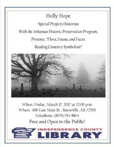 Independence County Library to Host Genealogy Program: Reading Cemetery Symbolism (Posted by Ginger Smith)