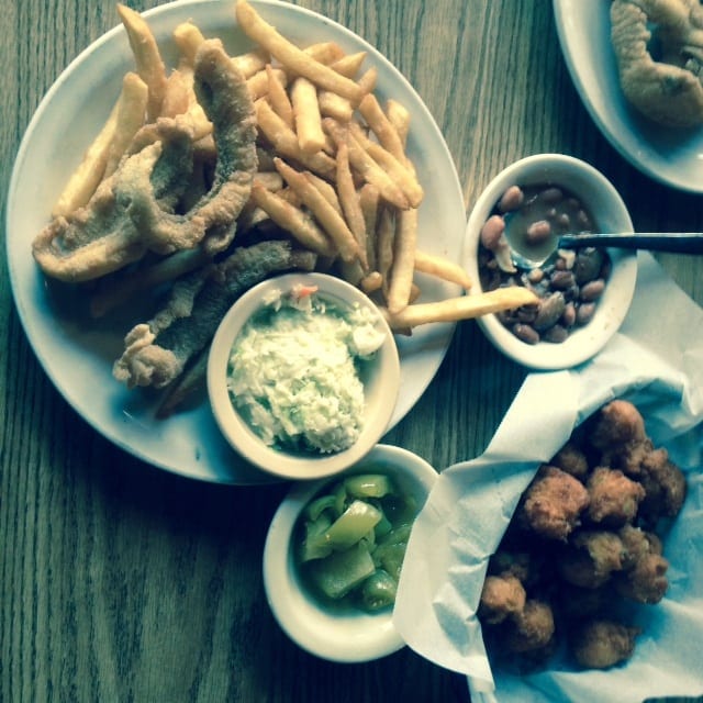 It was a cold, damp, dreary and rainy day, but my boss and I bundled up last winter and headed to JoJo’s and had lunch with JoJo and Mike. I had eaten there many times, as it is touted “the best place to eat catfish,” but that day I DID meet and greet the owners. They are really nice folks who are pleased to do exactly what they are doing right by Jo’s parents’ Fantastic Jack’s Fishing Resort! For full details go to their web site, www.jacksresort.com. Look below at what we ate!