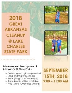 Lake Charles State Park Organizing Litter Pickup for September 15, 2018