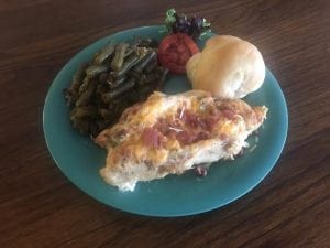 I started a few years back with her fresh tasty chicken salad and a delish bowl of fruit, and I love her green beans!!!!! Her cheesy chicken spaghetti is to die for, to quote an old friend of mine. I always, always see friends, personal and business, enjoying lunch when I go, all with a big smile and a big sigh of contentment. Treat yourself and your loved ones. Go!