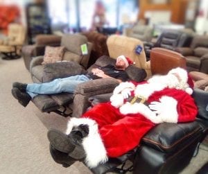 Santa is resting up at Autry’s Furniture before getting ready to work in his workshop at Back in Time Antiques.