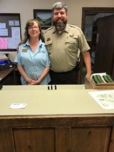 Yolanda, Office Mgr., and John Morrow, Supt. of Ozark Folk Center