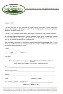 The Leo Rainey Tourism Appreciation Award Banquet will be March 30 at the Randolph County Courthouse upstairs in downtown Pocahontas at 5:30 pm. You need tickets to attend, and be sure and contact the above number and get your tickets!!! Zoom in on the form and get the info you need to join us in this historical Arkansas event!
