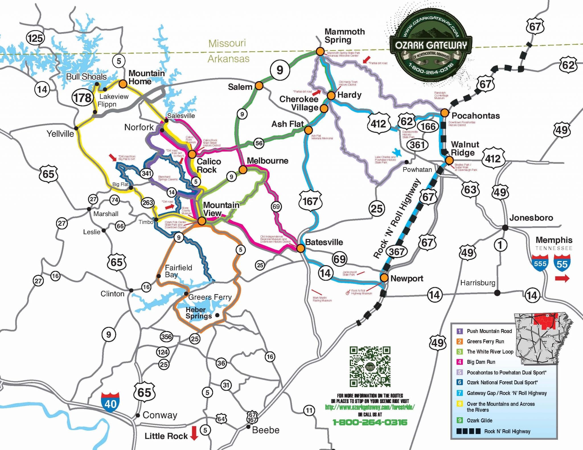 For information on the Arkansas Ozark Mountains, call 1-800-264-0316 or visit arkansas.com for more motorcycle and visitor information on the region and state.