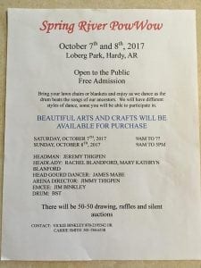Spring River PowWow Oct. 7 and 8th in Hardy! Join us! (Posted by Ginger Smith)