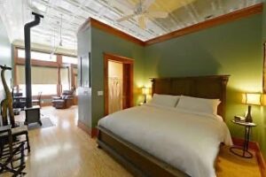 Each suite and apartment within the guesthouse is thoughtfully named to reflect significant figures and events from Pocahontas’s past. Guests can choose from options like the Jeff Thompson Suite, Lewis de Mun Suite, Henry Morton Stanley Suite, Laurel Apartment, and Julia Dean Apartment. These accommodations feature original architectural elements, such as ornate ceilings and custom woodwork, seamlessly integrated with amenities like jetted tubs, full kitchens, and cozy fireplaces.